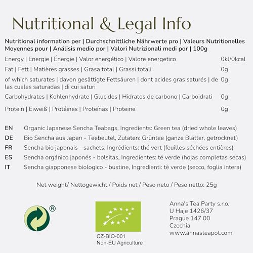Anna's Teapot Organic Sencha in Teabags - Individually Wrapped